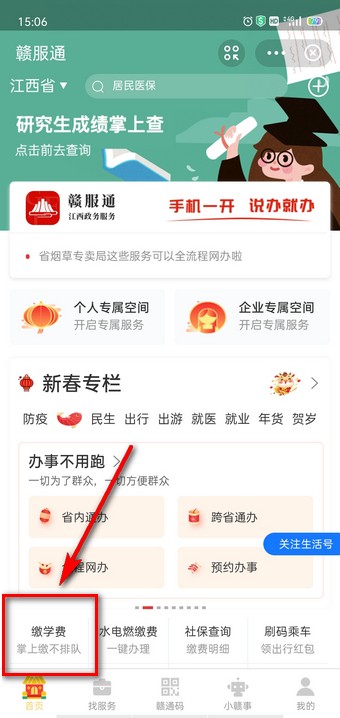 06、进入主题服务,选择【支付缴费】