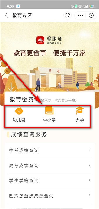 07、进入在上方就能选择孩子就学学段进行缴费
