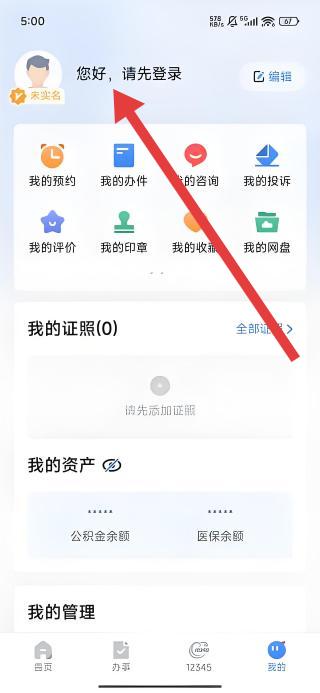 3、进入到个人中心页面中,可以通过点击您好,请先登录提示区域,启动账号登录流程。