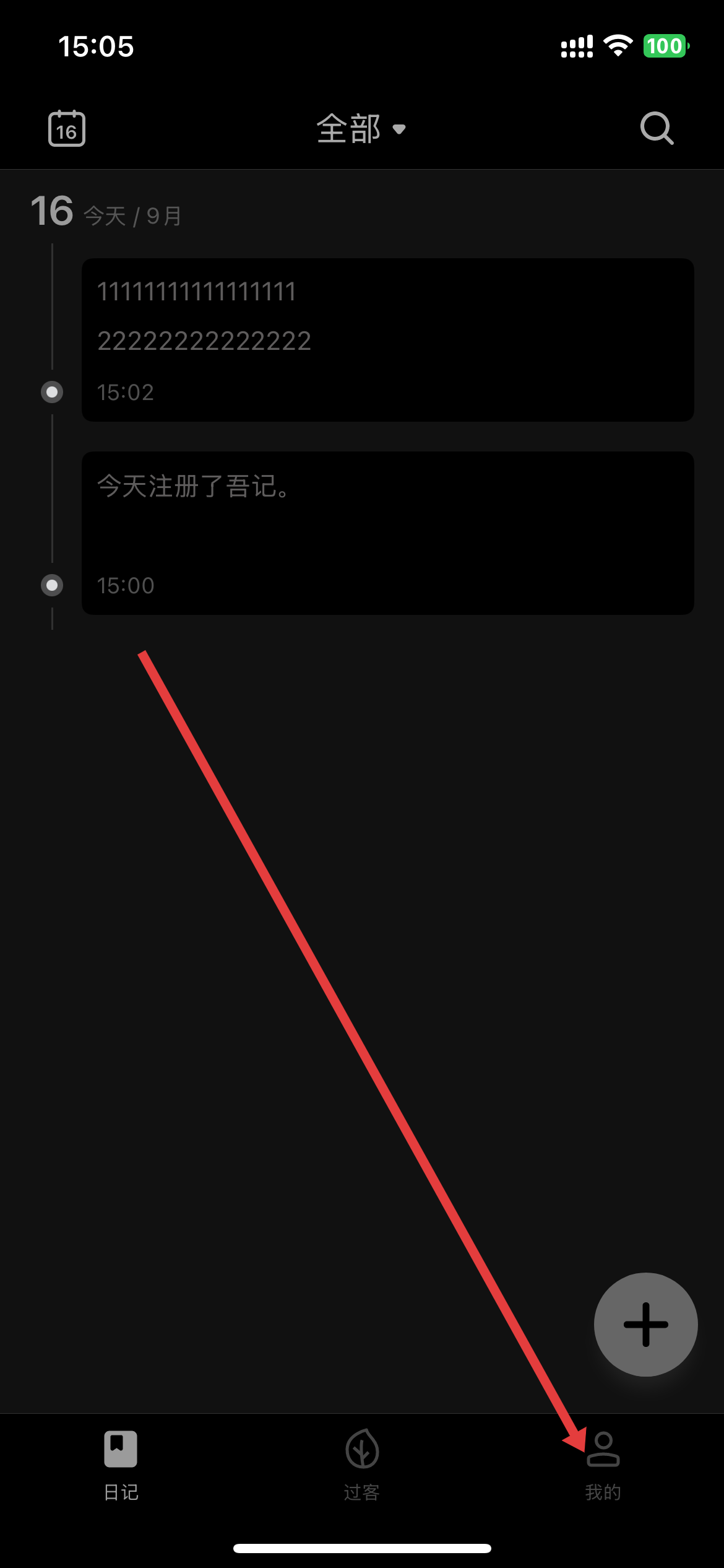 1、打开吾记日记APP,点击底部导航栏最右侧的我的选项,进入个人页面。