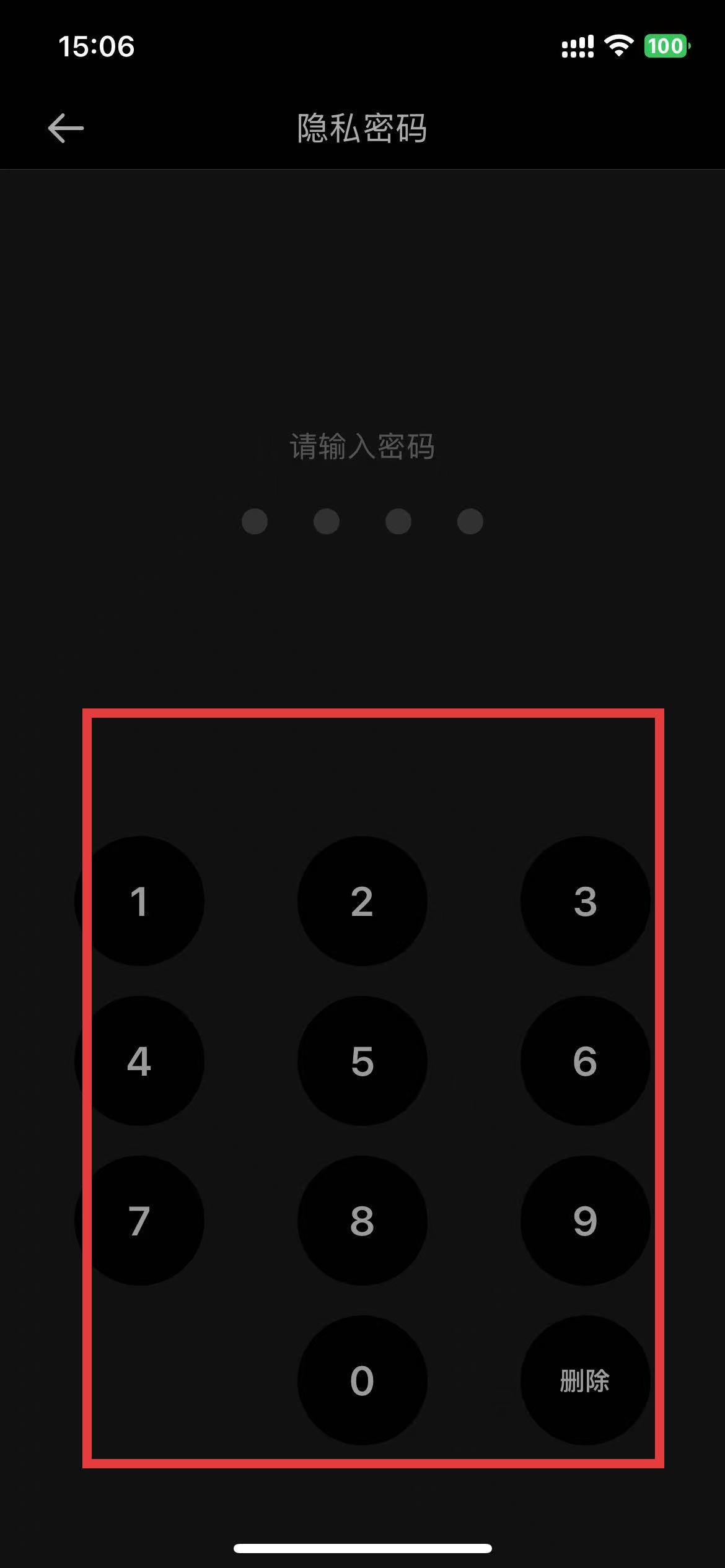 4、在弹出的界面设置4位隐私密码,设置完成后,即可开启密码保护功能。