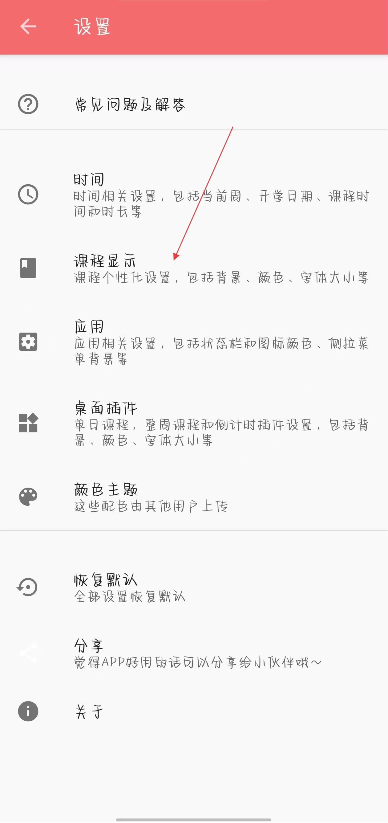 3、在设置页面里,点击课程显示选项,进入课程个性化设置界面。
