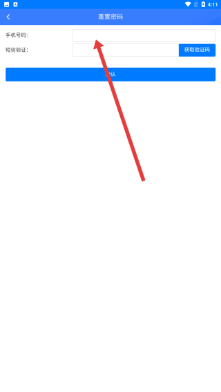 2、在进入到重置密码页面中,在输入框中填写手机号码以便获取验证码。