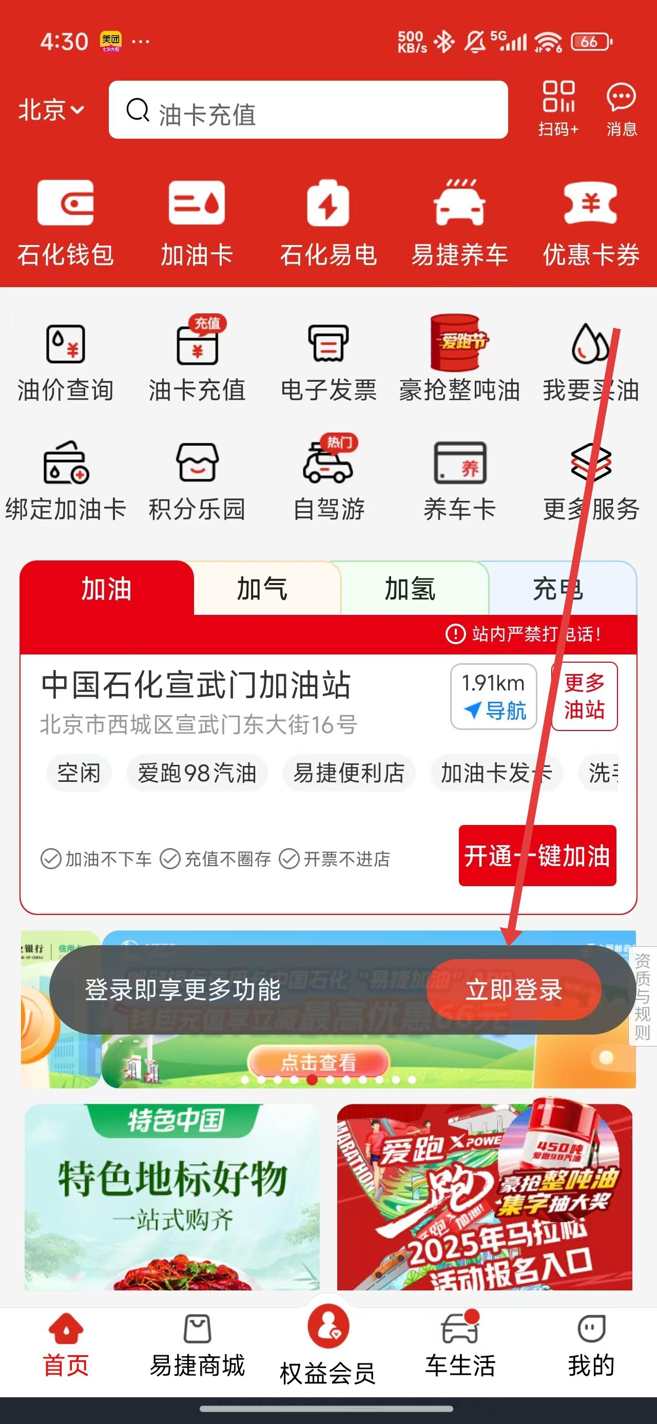 2、在中国石化app的首页中,可以点击弹窗中的立即登录按钮,登录账号。