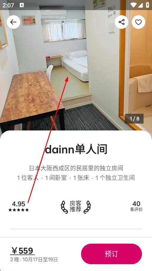 1、打开爱彼迎App,在探索页面中,找到你感兴趣的房源,点击进入。