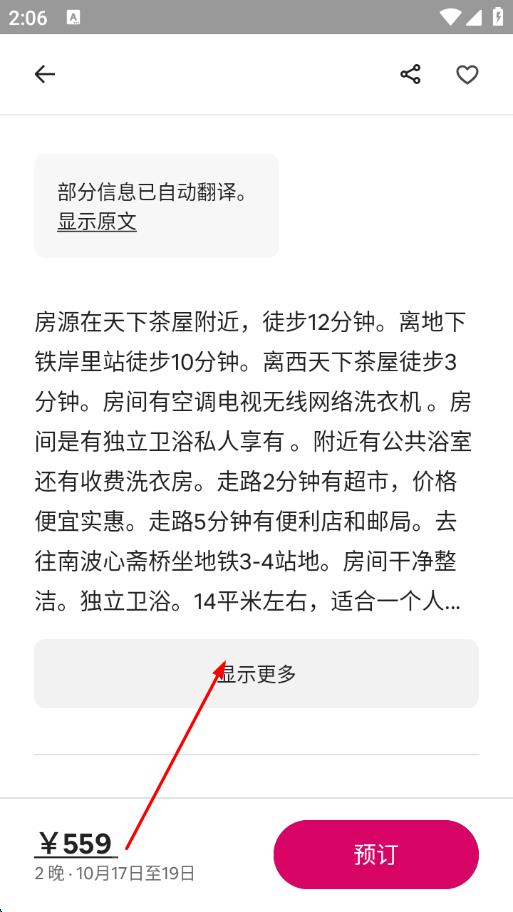 3、在房源图片下方,找到关于房源的详细描述部分,点击显示更多。