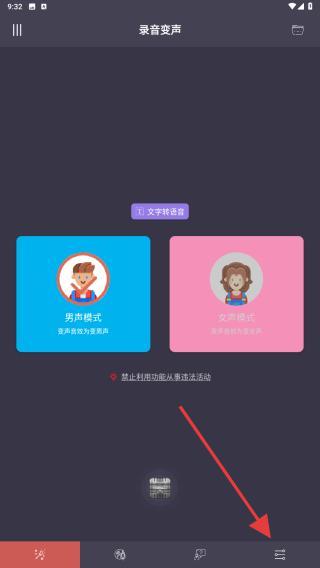 1、打开幻音变声器APP,点击界面底部导航栏最右侧的功能图标,进入个人中心页面。