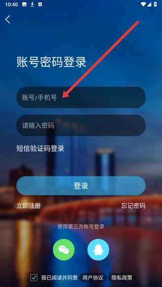 4、在账号密码登录页面中,点击输入框依次输入账号密码后完成登录操作。