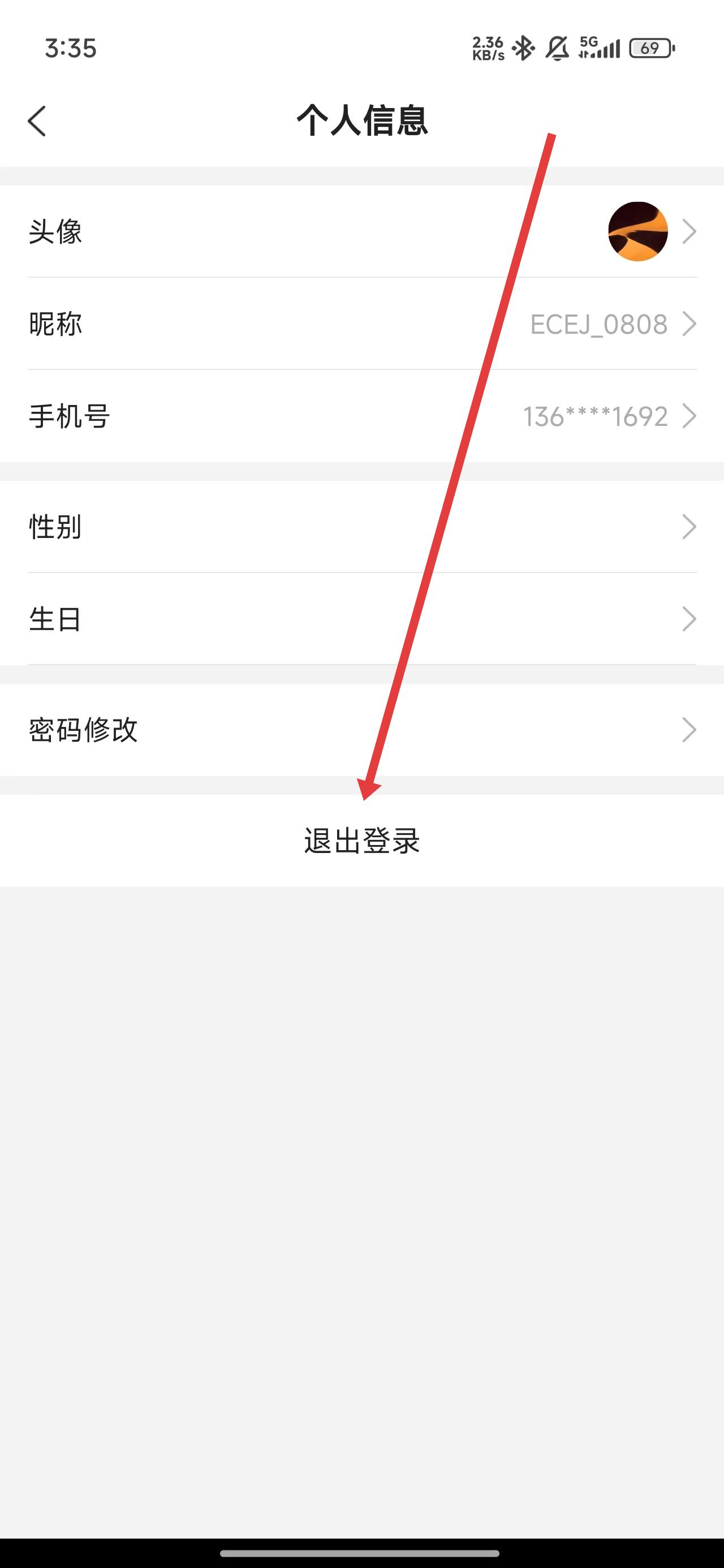 2、在进入到个人信息后,可以点击退出登录进行切换账号的操作。
