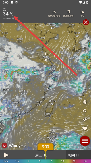 4、返回到主页面中,可以在左上方查看到当前地区云量占比。