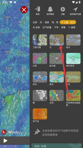 3、可以在云量相关的图层中,选择点击云图层使用。
