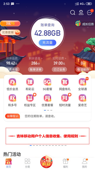 吉悦和生活app是面向吉林省用户推出的移动营业厅客户端。提供了话费、流量充值、童话记录查询以及套餐业务办理等服务功能。移动用户可以在线自助办理所需业务,满足你在家轻松办理套餐业务需求。欢迎大家安装使用。