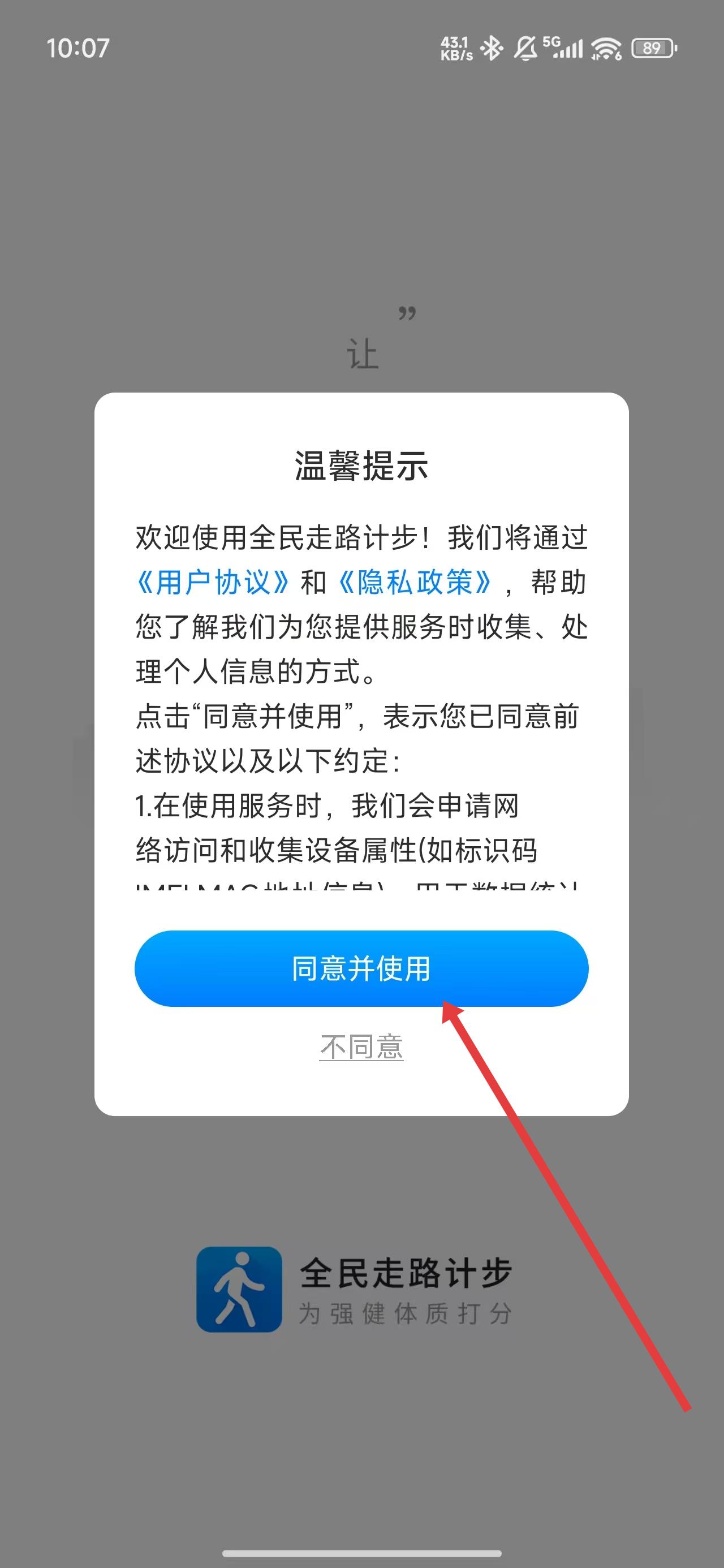 1、打开app后,点击弹窗中的同意并使用按钮,进入使用。