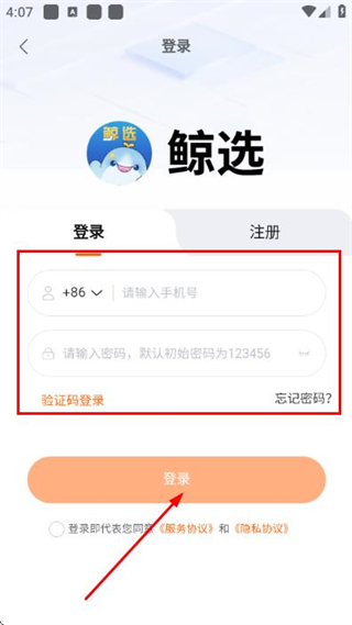 3、在登录页面填写手机号和验证码,勾选协议后,点击登录完成账号登录操作。