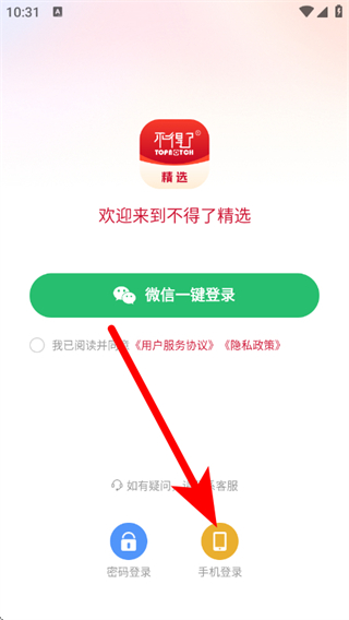 2、在登录页面,点击手机登录,进入手机号登录流程。