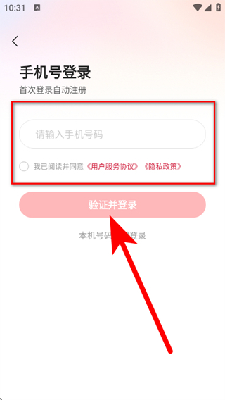 3、输入手机号码,勾选同意协议后,点击验证并登录。