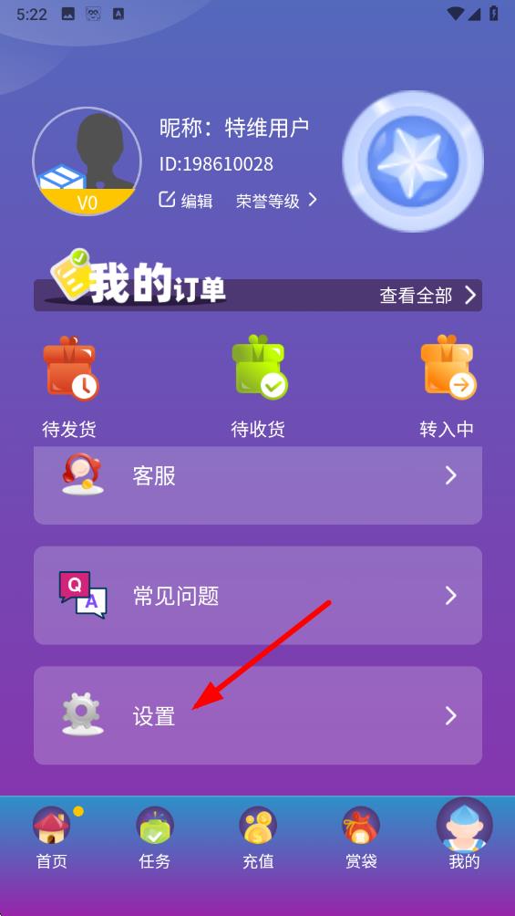 2、在我的界面中,下滑找到并点击设置的选项,进入设置页面。