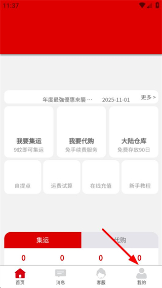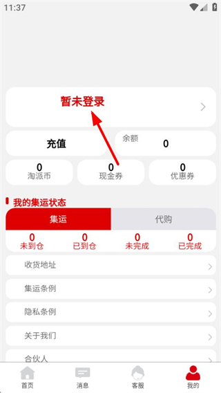 1、在淘派國際首页,点击底部导航栏的我的选项,可进入个人中心页面。