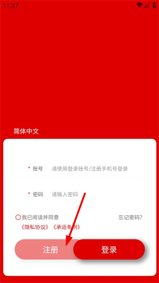 3、在登录界面,点击注册按钮,可进入账号注册页面。