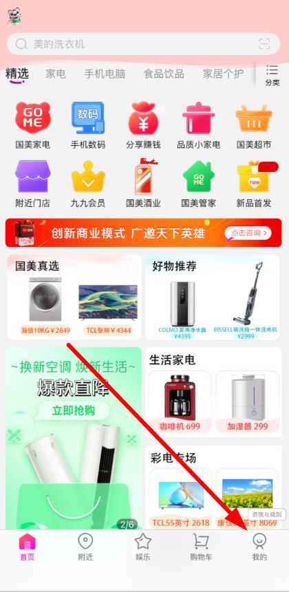 1、打开国美App,点击底部导航栏中的我的选项,进入个人页面。