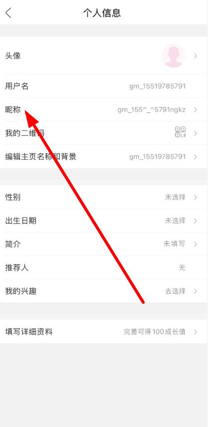 4、在个人信息页面中,找到昵称选项,点击右侧的昵称内容进行修改,输入新昵称后保存即可。