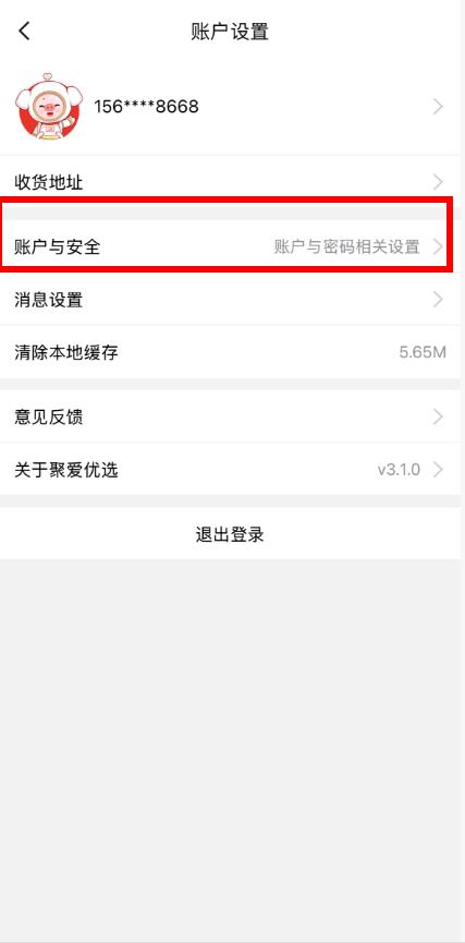 3、在账户设置界面里,找到并点击账户与安全选项。