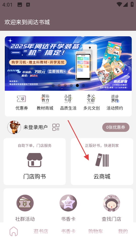 1、点击页面中的云商城选项,进入阅达云商城页面。