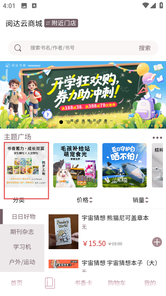 2、在阅达云商城页面,点击书香蓄力成长双翼主题板块,进入主题广场页面。