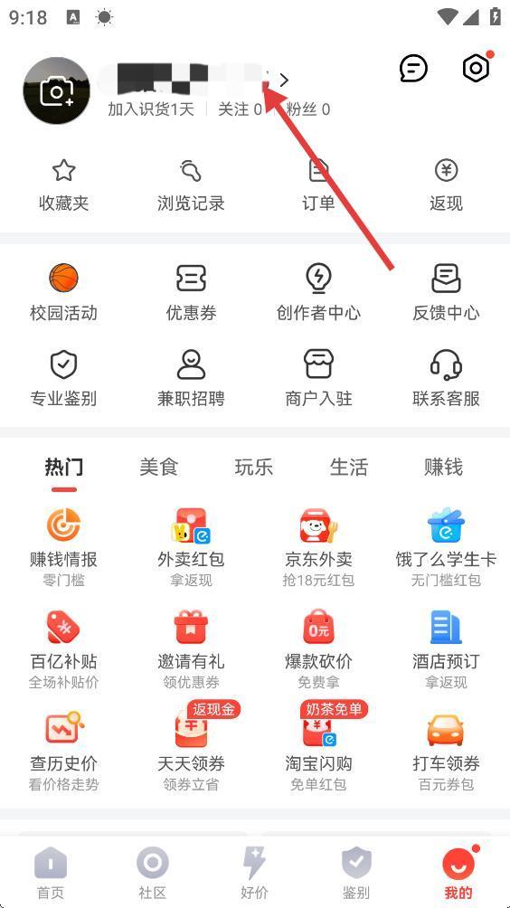2、点击个人头像右侧的箭头,进入个人资料页。