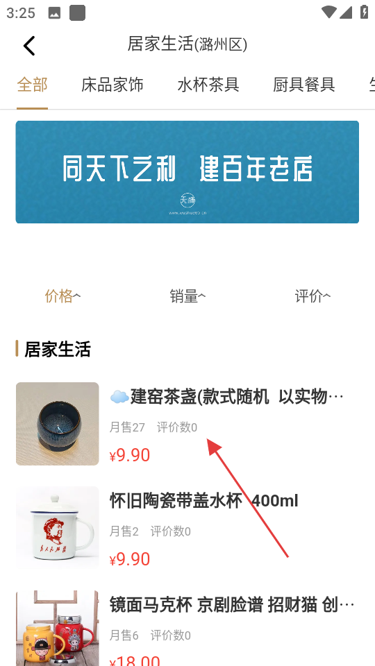 2、在居家生活页面点击建窑茶盏,进入商品详情页。