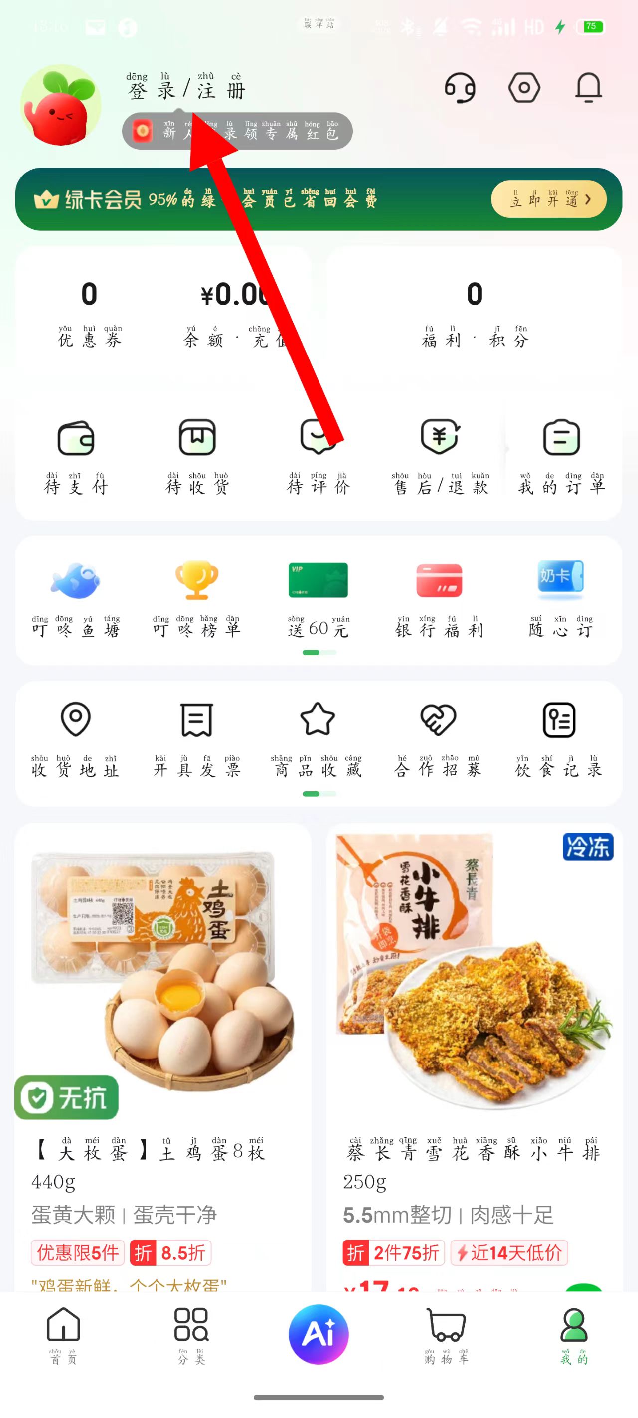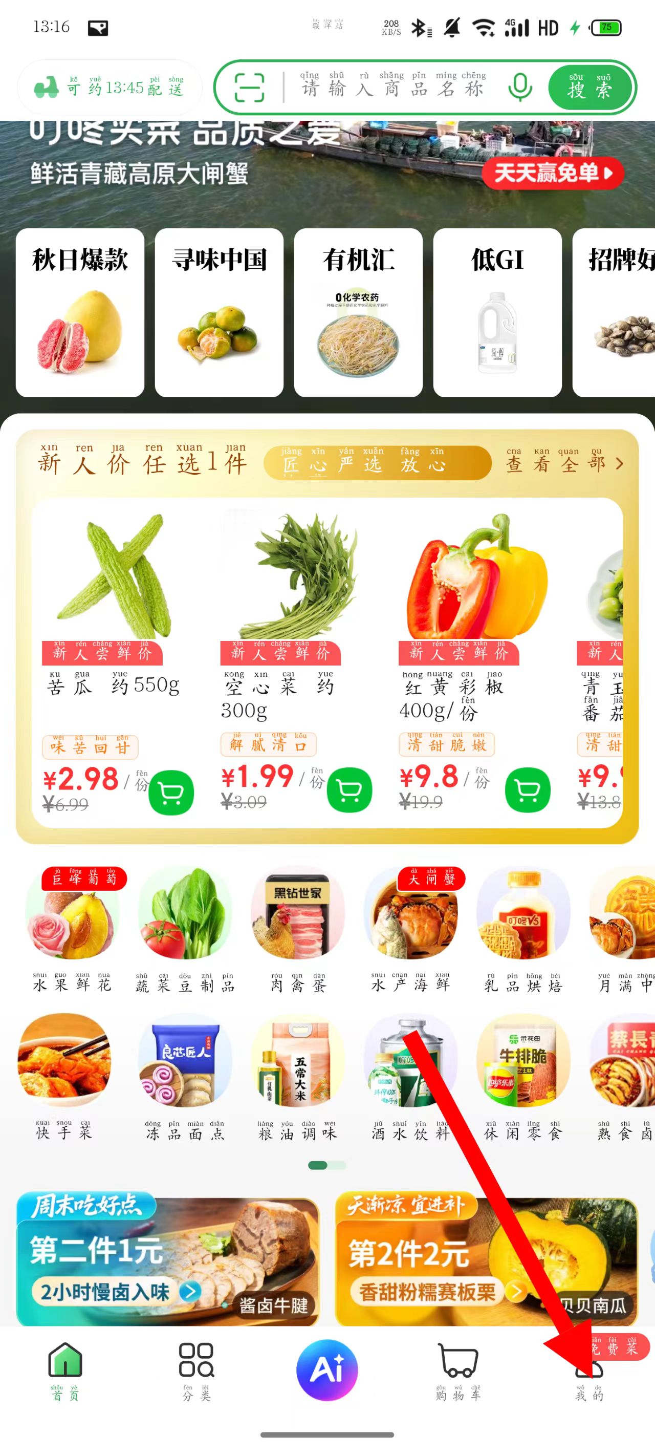 1、打开叮咚买菜,点击底部导航栏的我的选项。