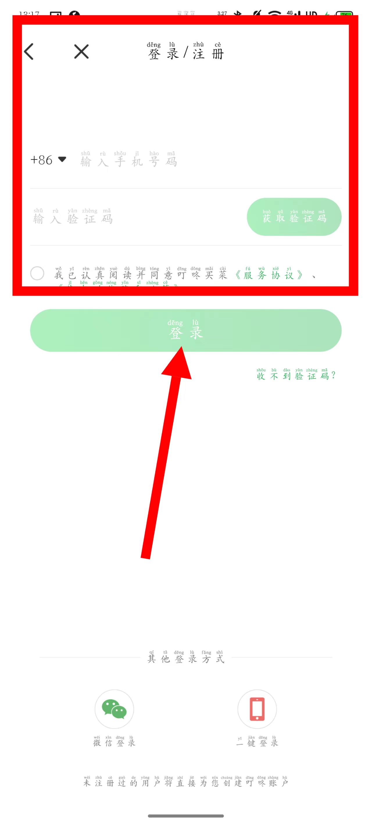 4、输入手机号码,将收到的验证码输入后,最后点击登录按钮,完成账号登录操作。