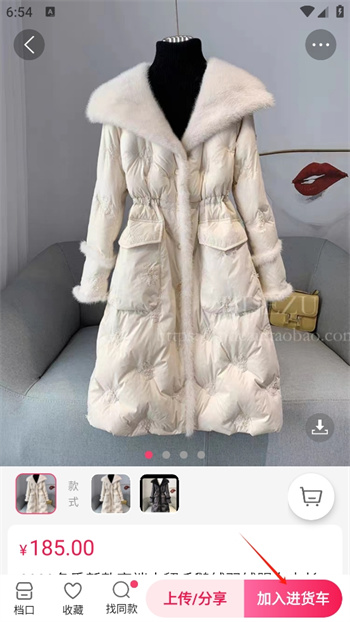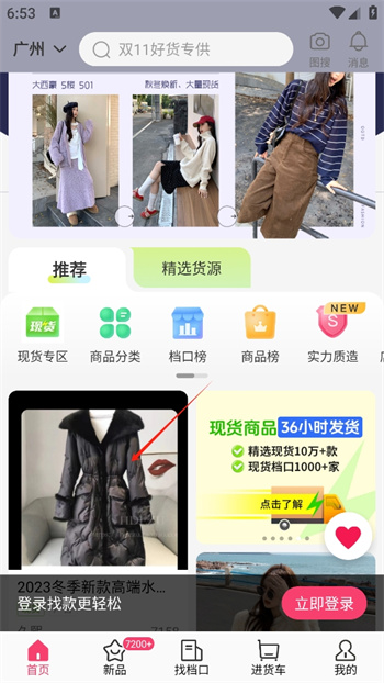 1、这是一个服装进货的应用平台,在这里以最低的价格收购最便宜的服装,选择一个自己想要购买的服装,点击进入商品的介绍界面中;