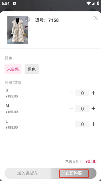 3、之后再选购的界面中选择自己想要购买的商品颜色、尺码还有数量,在确认完自己所购买的商品之后,就可以点击【立即购买】购买当前选中的商品;