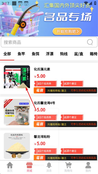 特色财神驾到拔头筹活动玩法丰富,用户参与活动即有机会拔得头筹,免费兑换全新渔具装备,增添购物与使用乐趣。
