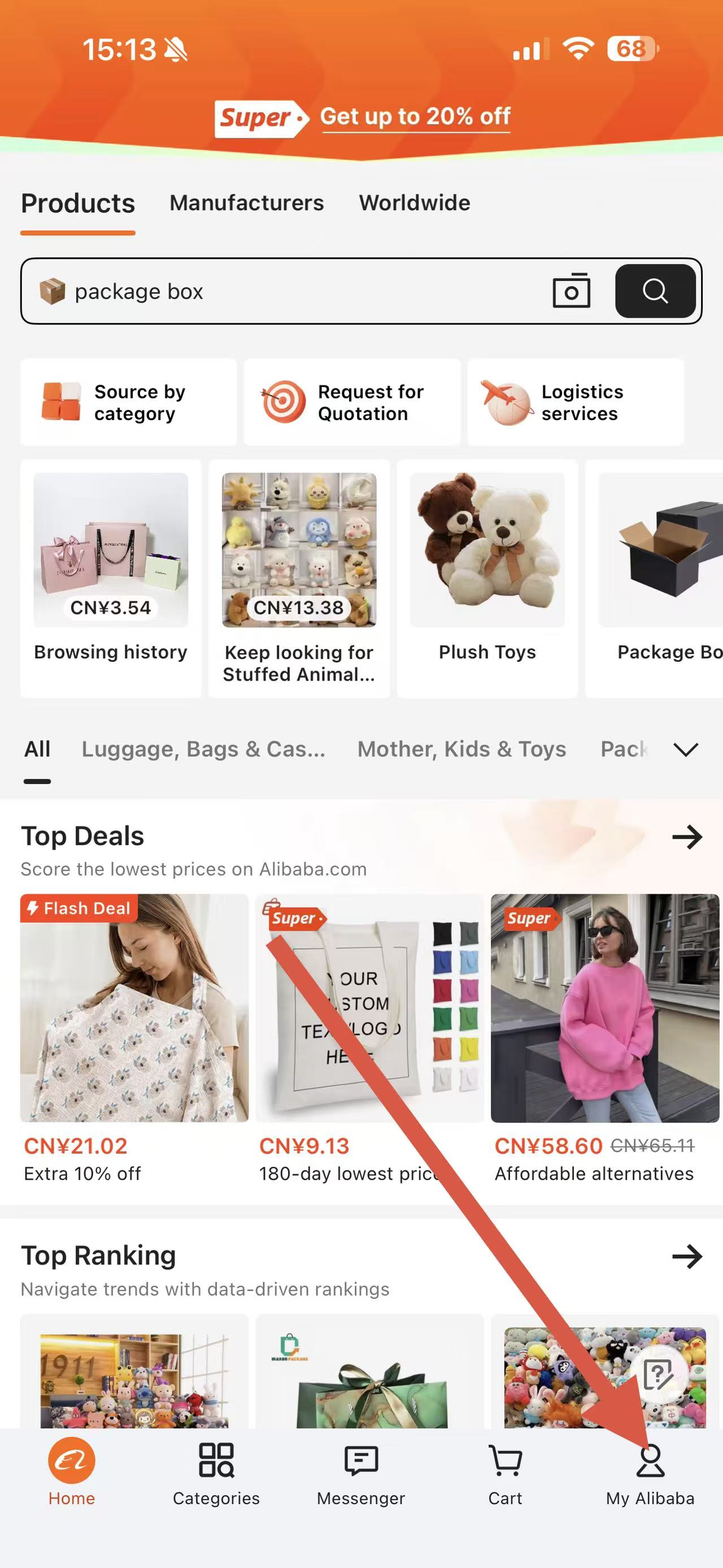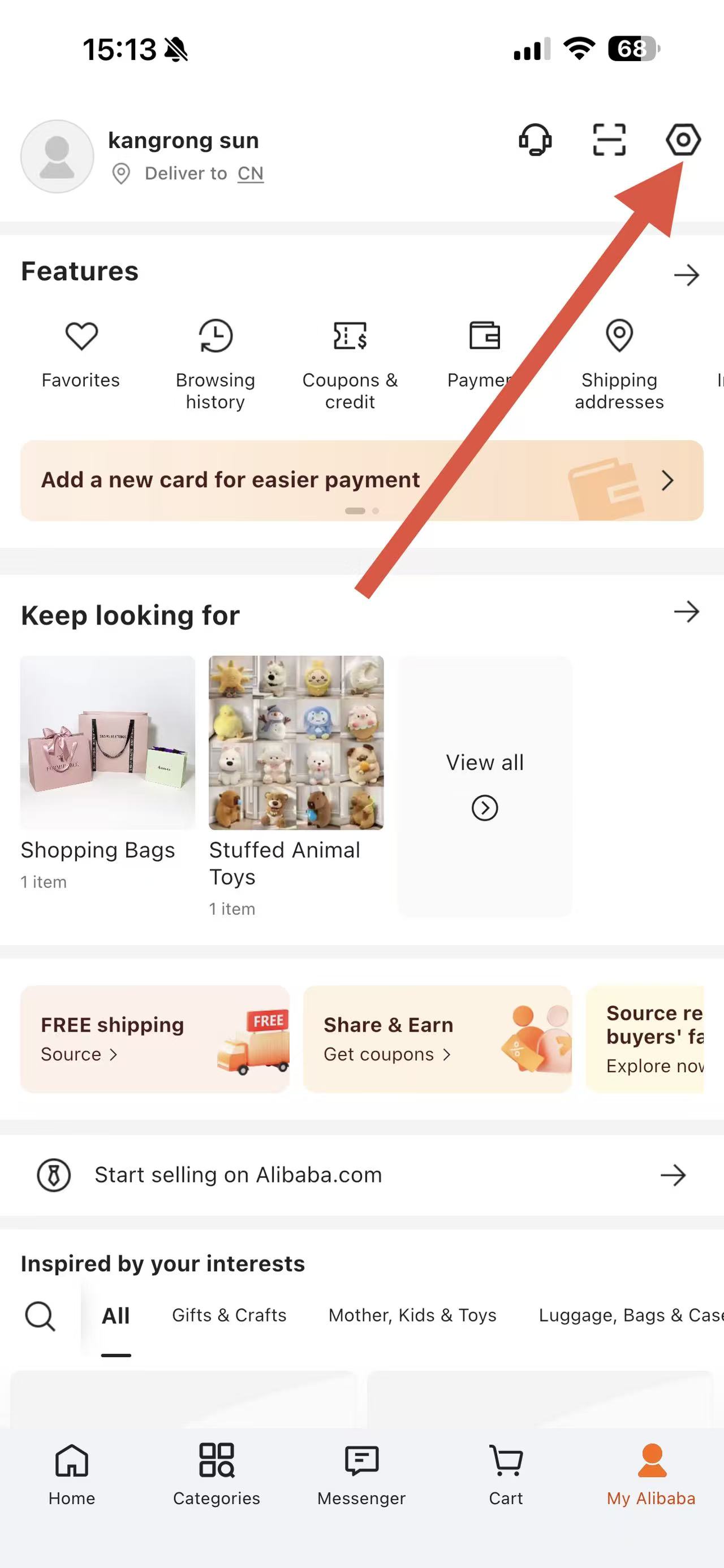 1、打开阿里巴巴国际站APP,点击底部导航栏中的My Alibaba进入个人页面。