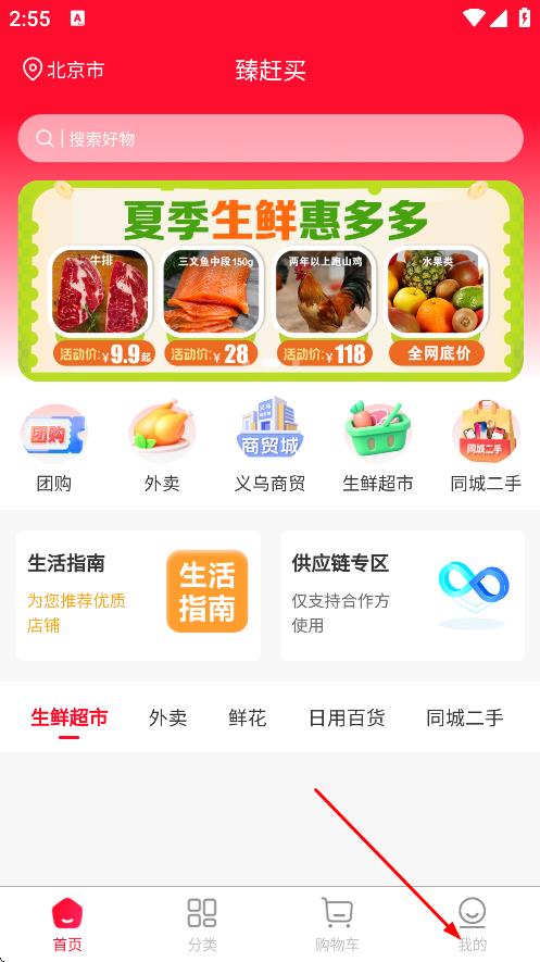 1、在臻赶买的首页,点击底部我的,进入个人页面。
