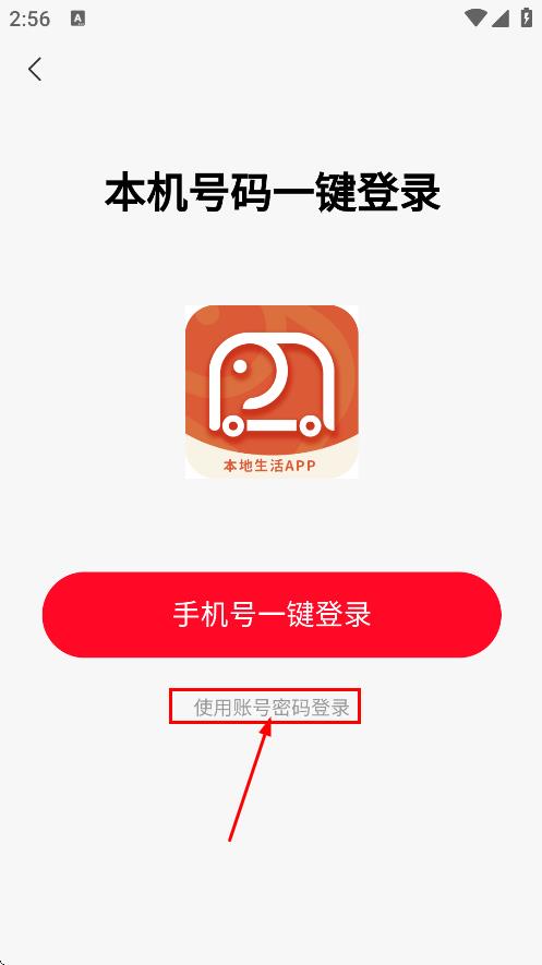 3、在登录方式选择页面,点击使用账号密码登录,进入账号登录页面。