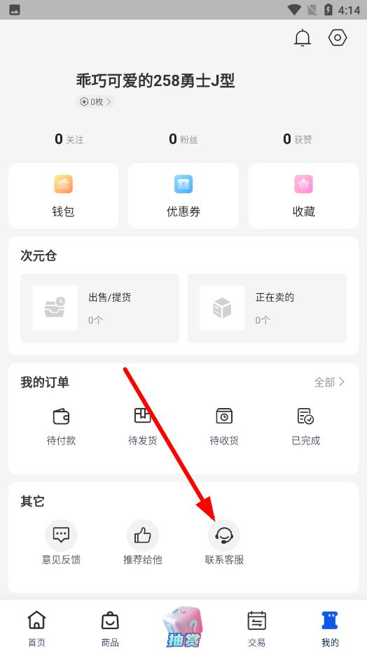 2、在我的页面中,向下滑动屏幕,找到其它板块,点击其中的联系客服图标。