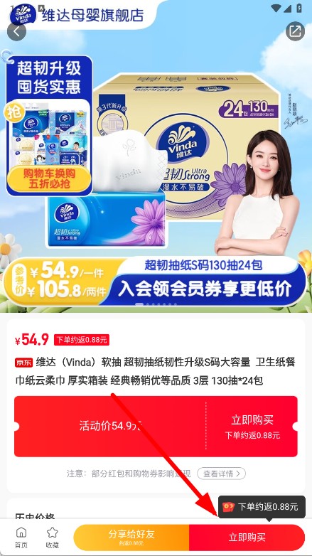 4、在商品详情页,点击立即购买按钮,即可享受返利优惠并完成购买操作。