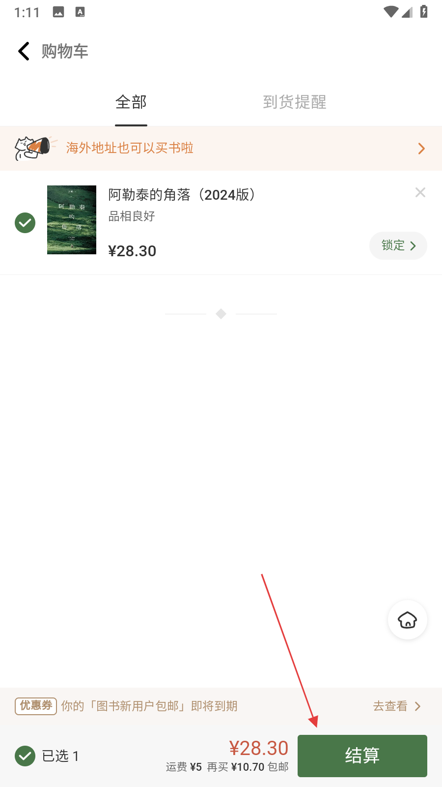 4、看到已加入的商品,确认商品无误后,点击右下角结算按钮。