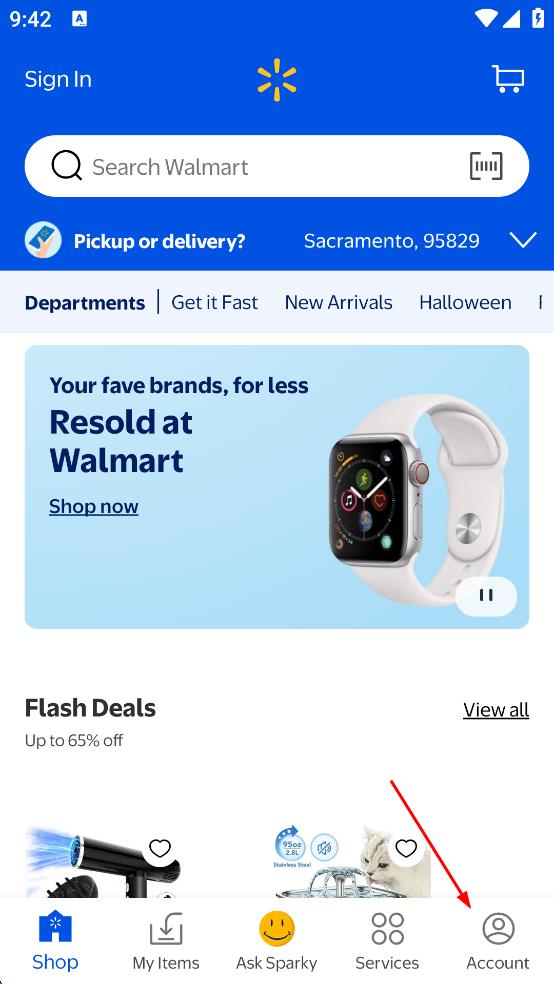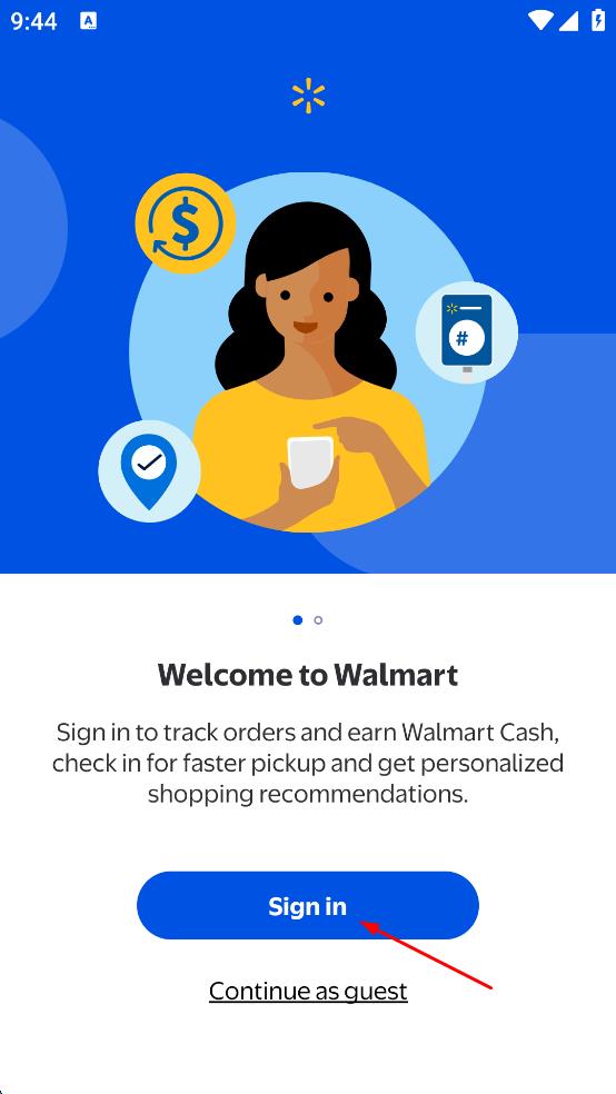1、打开沃尔玛APP,在欢迎页面点击“Sign in”按钮,进入登录相关界面。