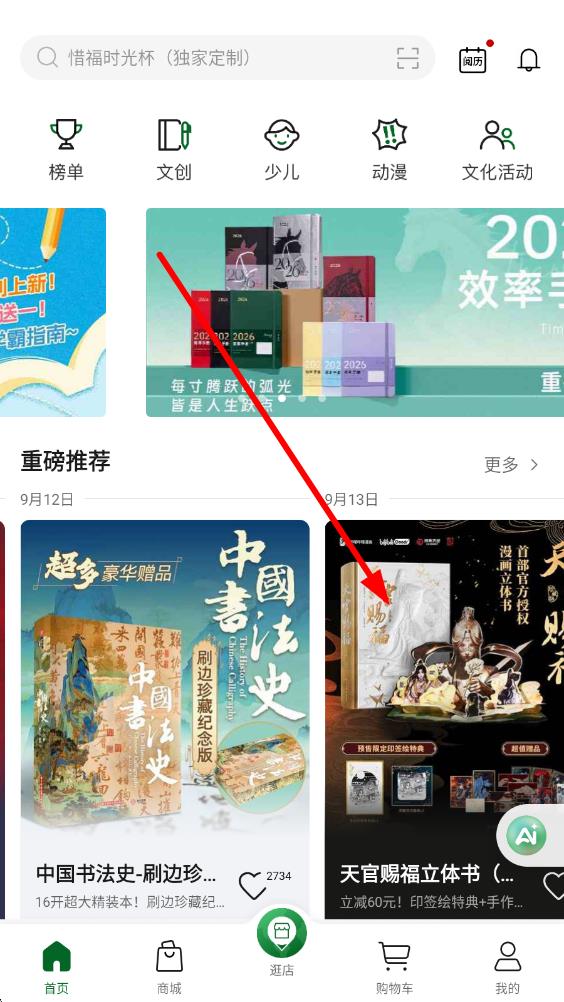 2、读者可以便捷地了解西西弗当下的重点产品,快速在线上下单。