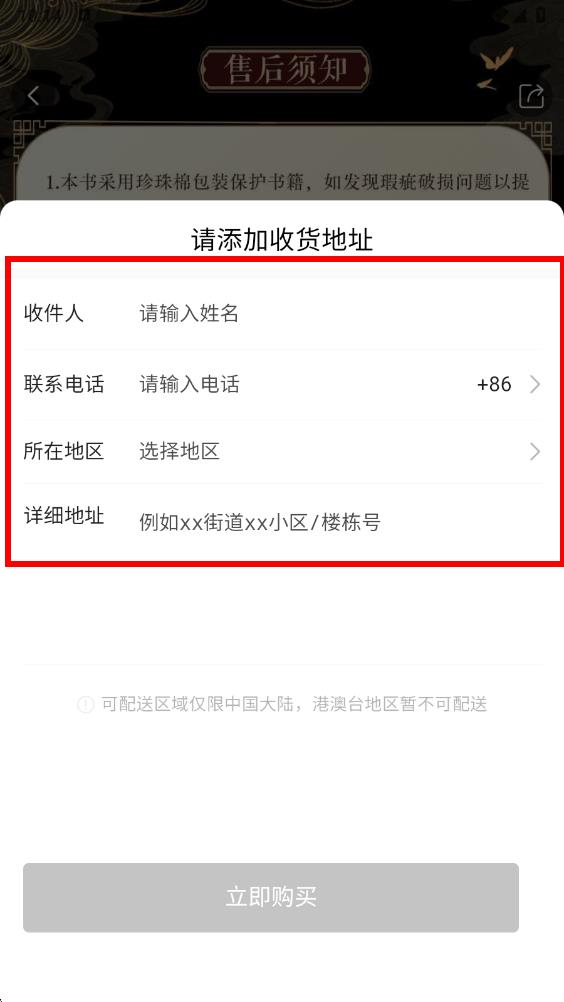 4、填好收货地址后,再次点击立即购买,然后按照提示完成支付等后续操作,即可完成买书流程。