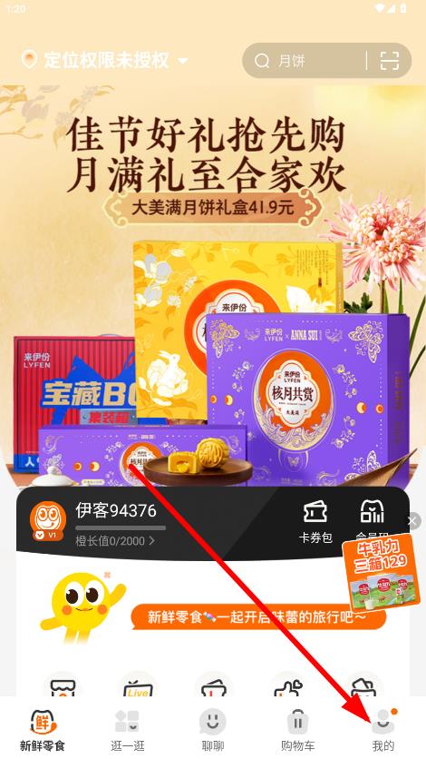1、打开来伊份App,点击底部导航栏中的我的选项,进入个人页面。