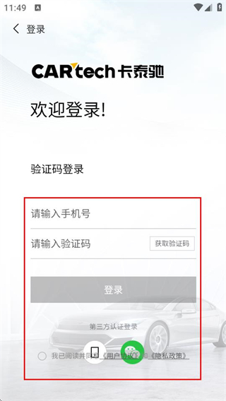 3、在登录页面,输入信息,勾选协议后点击登录,完成账号登录。