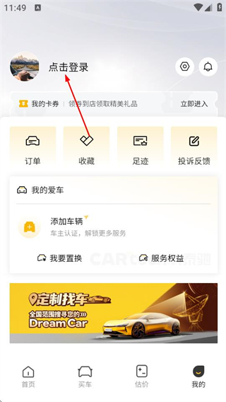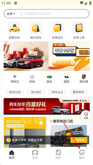 1、在卡泰驰首页,点击右下角我的选项,进入个人页面。