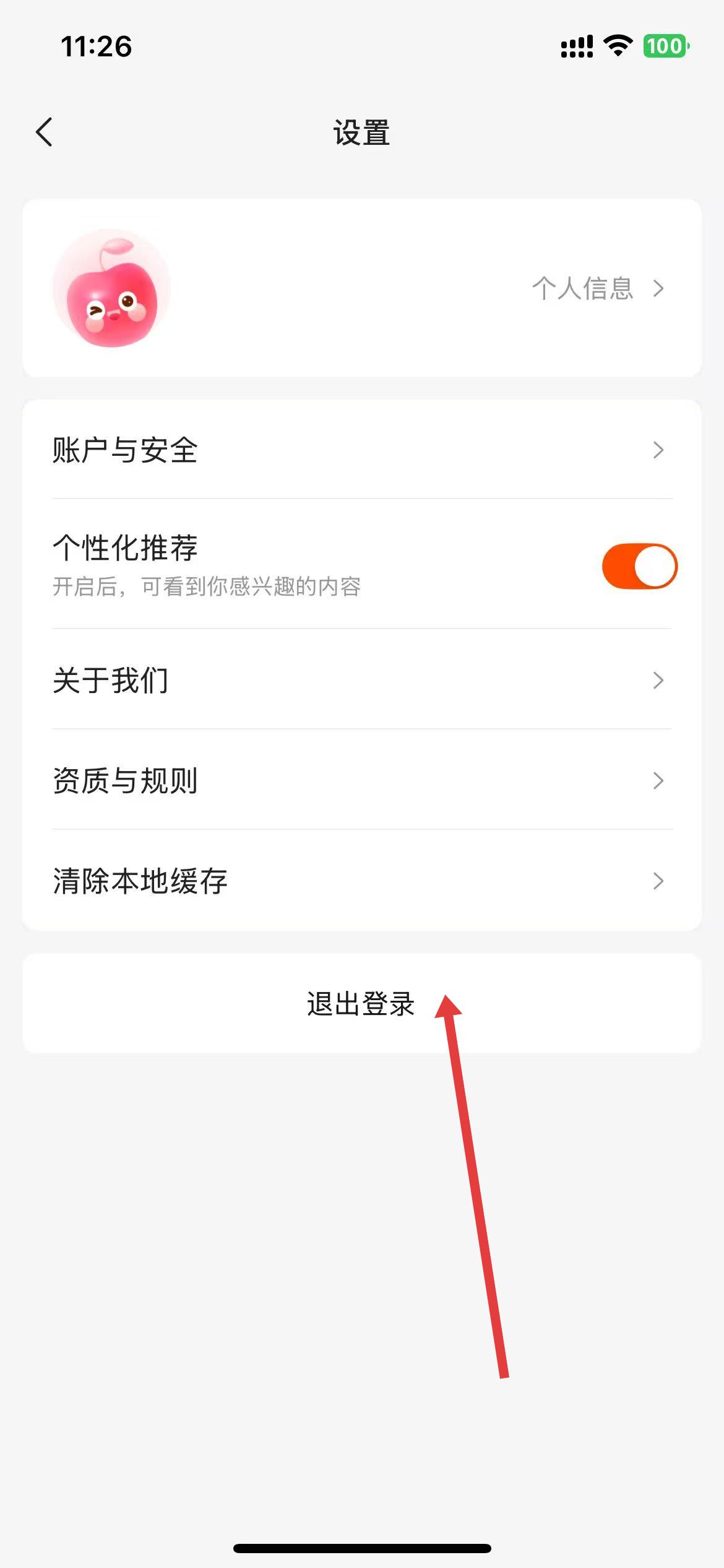 3、在设置页面里,找到退出登录选项并点击。