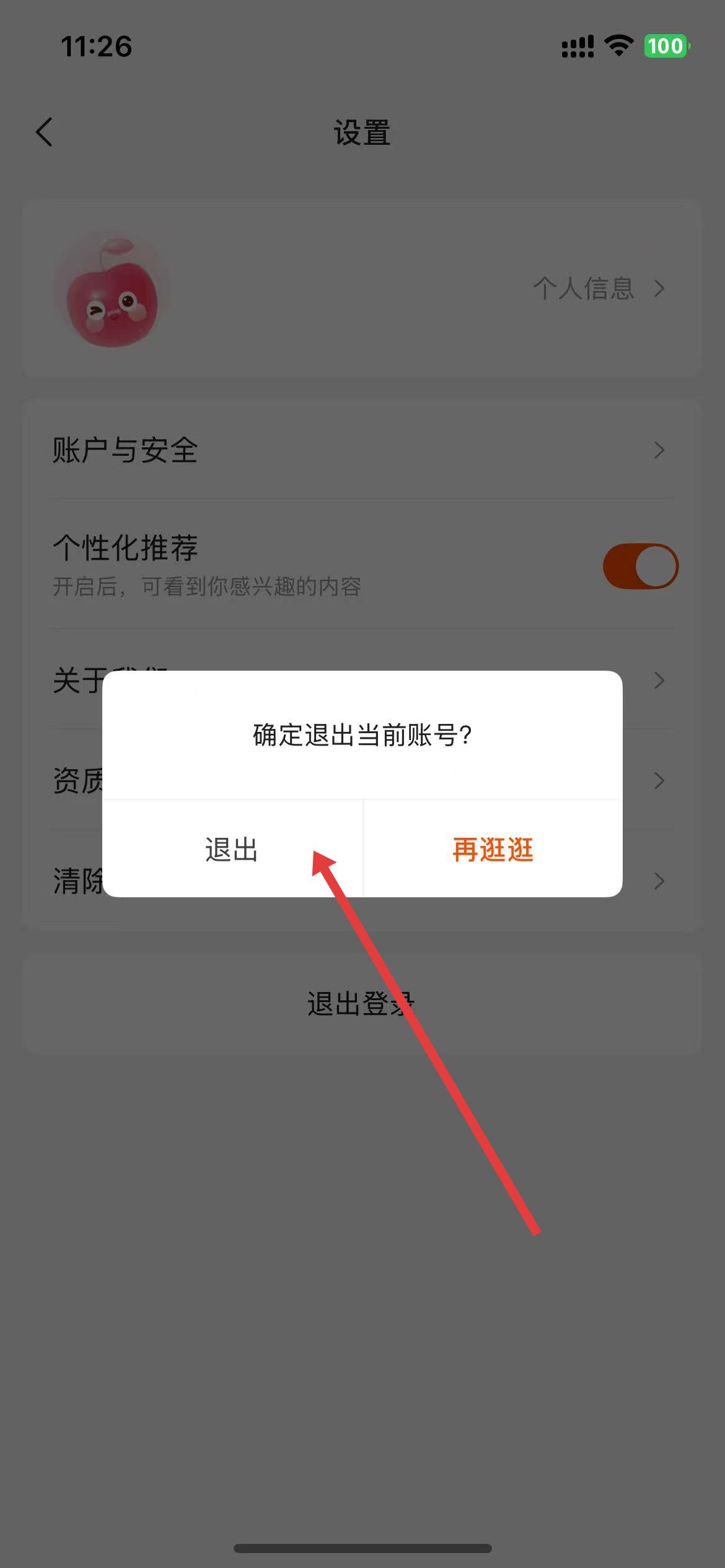 4、弹出的窗口,点击退出,即可完成账号退出登录操作。