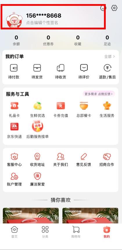 1、打开聚爱优选App,点击底部导航栏中的我的选项,进入个人页面。